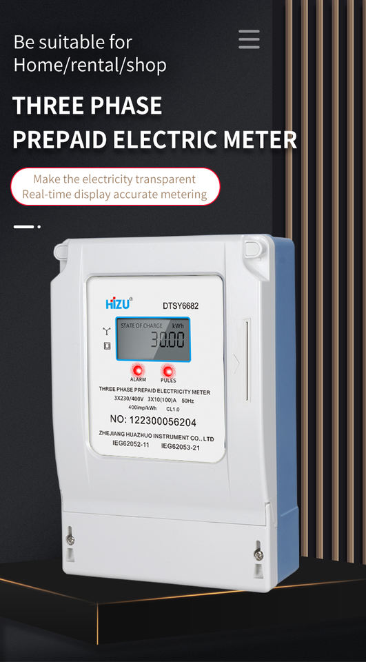 Caja de Medidor de Energía Trifásico Antifraude con Pago Previo, Protocolo ModbusRTU/DLT_645-2007, 110-230V 50/60Hz, Instalación en Riel DIN de 35mm