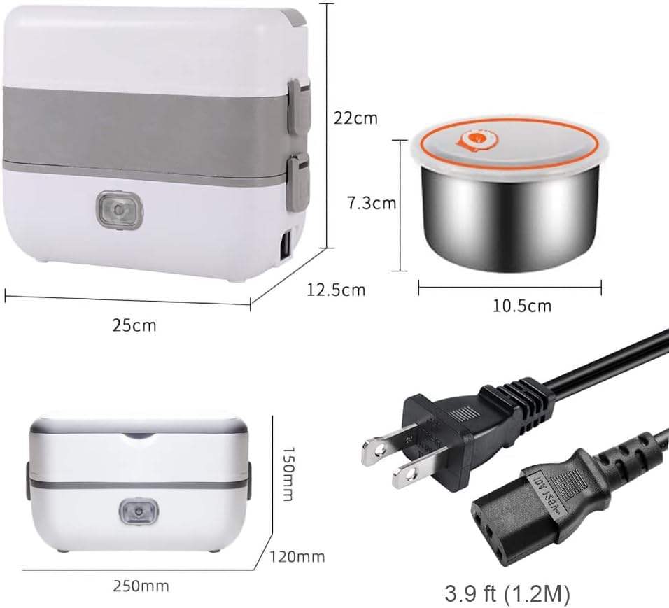 Lonchera Eléctrica Anti-Fugas Laterales, Calentador de Alimentos de Gran Capacidad con Recipiente de Acero Inoxidable de 2.4L, Calentador de Alimentos Portátil