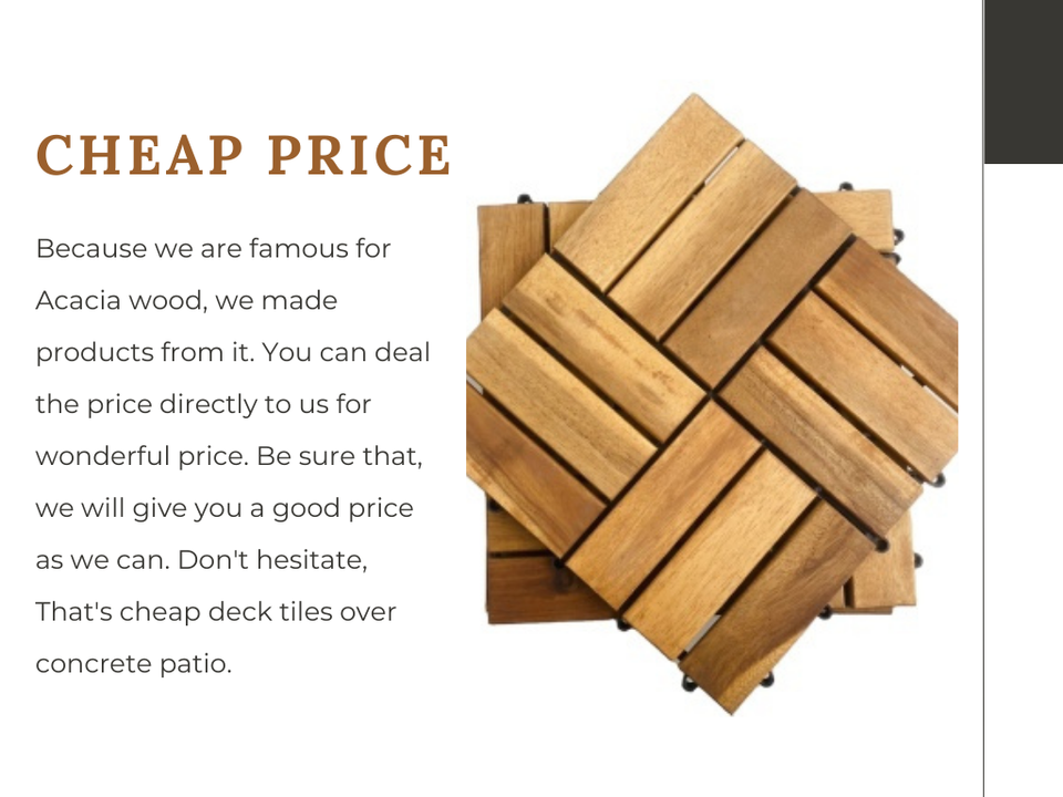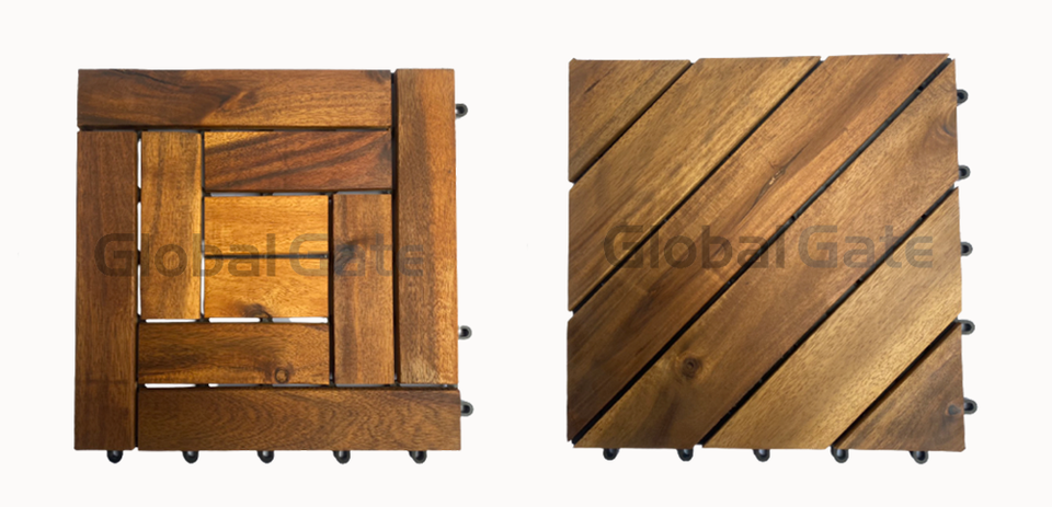 Baldosas de Madera de Acacia de Vietnam para Exteriores, Antideslizantes, Impermeables, Contemporáneas, Encajables, de 18 mm, Acabado Mate, Tratamiento de Superficie con Aceite