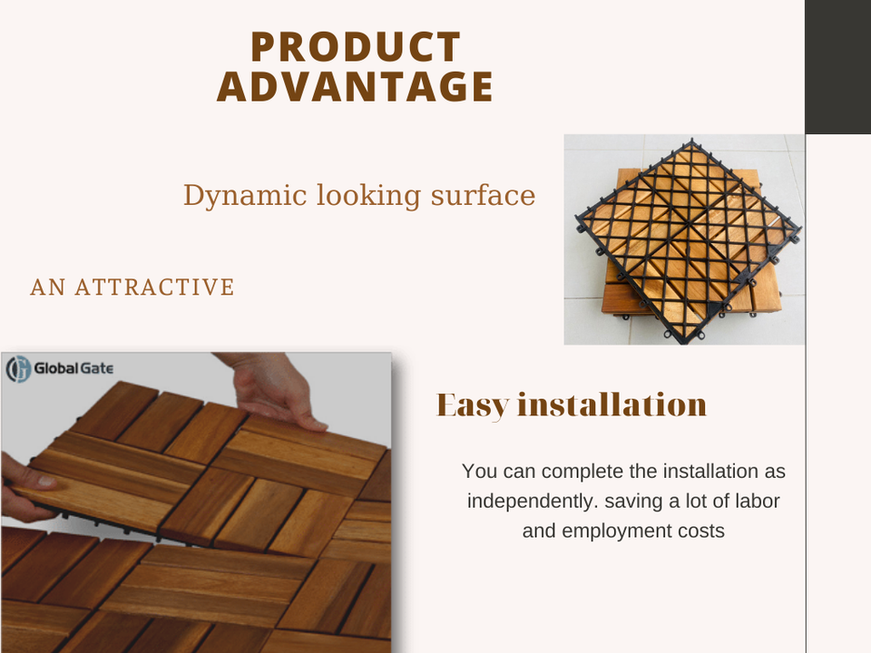 Ventaja:Antideslizante.Impermeable. Ecológico. Sin mantenimiento.