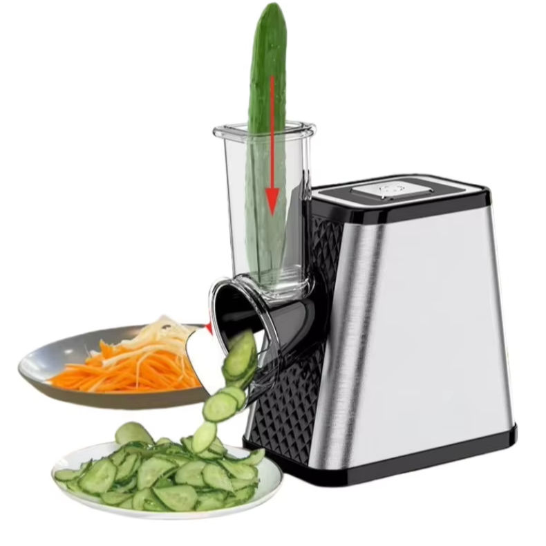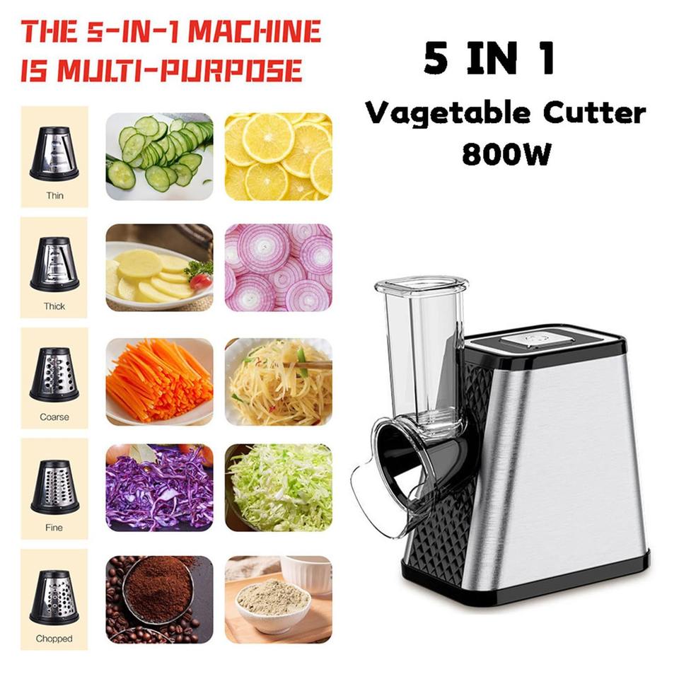 Cortadora de Verduras Eléctrica Multifuncional de 800W, Carcasa de Acero Inoxidable, Diseño Automático de Bajo Ruido y Anti-Salpicaduras, Salida Cerrada para