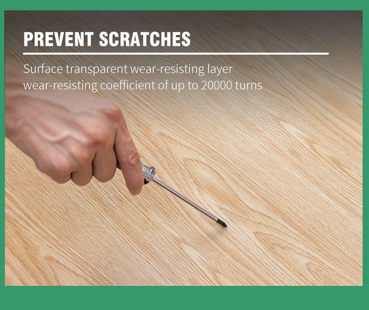 Anti-Scratch, Impermeable, Respetuoso del medio ambiente, Fuego, Antideslizante, Resistente al desgaste, Bacterias antis, antideslizanteCaracterística