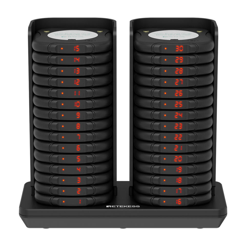 Sistema de Gestión de Posavasos Inalámbrico para Restaurantes con Alarma Antideslizante y Apilable, Recordatorio de Salida de Rango, TD186, 30 Pagers