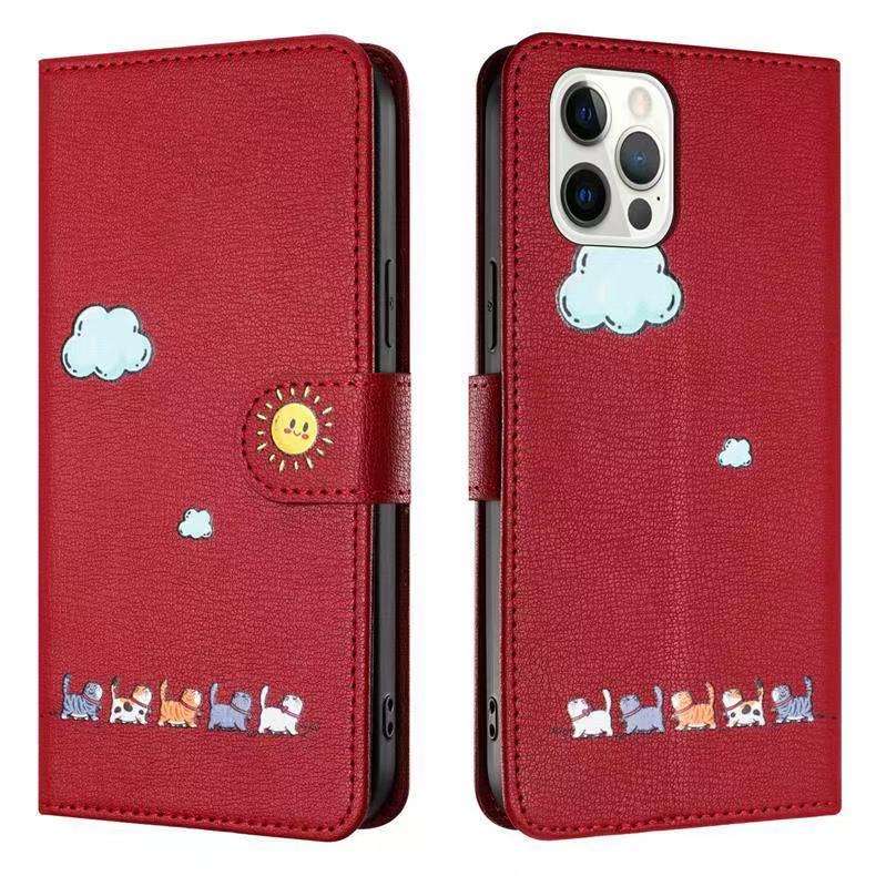 Funda de Teléfono Tipo Libro de Cuero con Diseño de Gato Anti-Caídas, Cierre Magnético con Carcasa Interior Anti-Golpes para iPhone 16 Pro Max