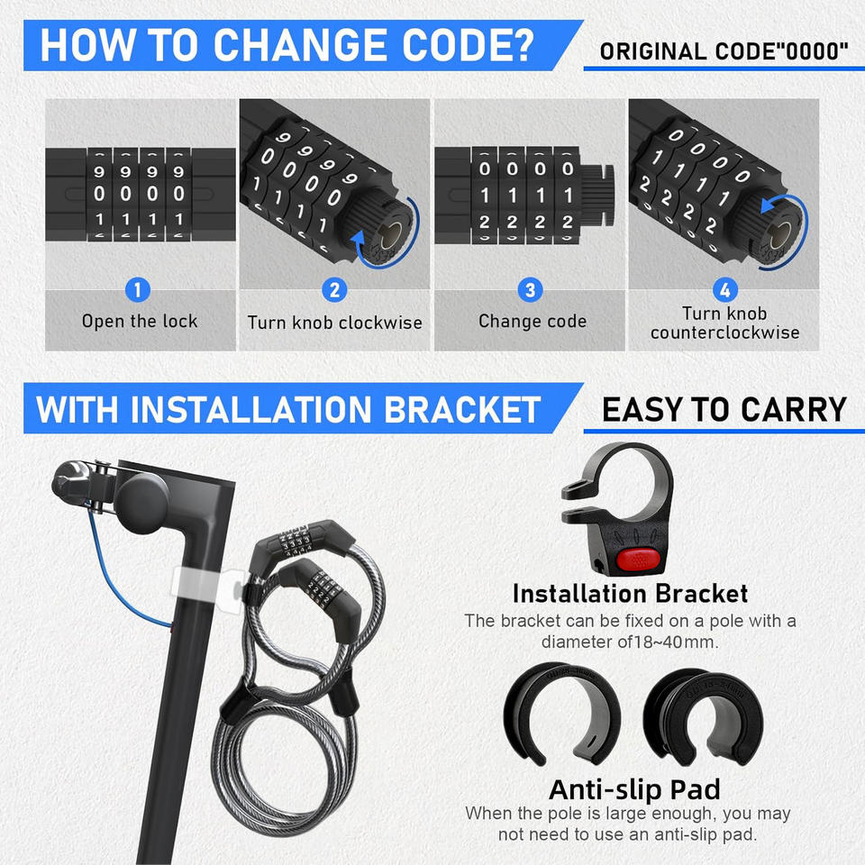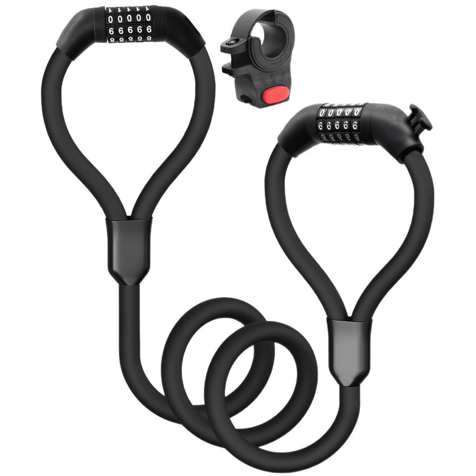 Candado de Cable de Acero Antirrobo con Combinación de 4 Dígitos, Candado de Doble Cabeza Tipo Esposas para Bicicleta Eléctrica con Soporte