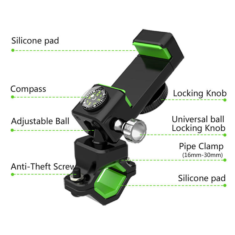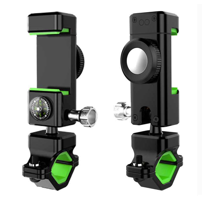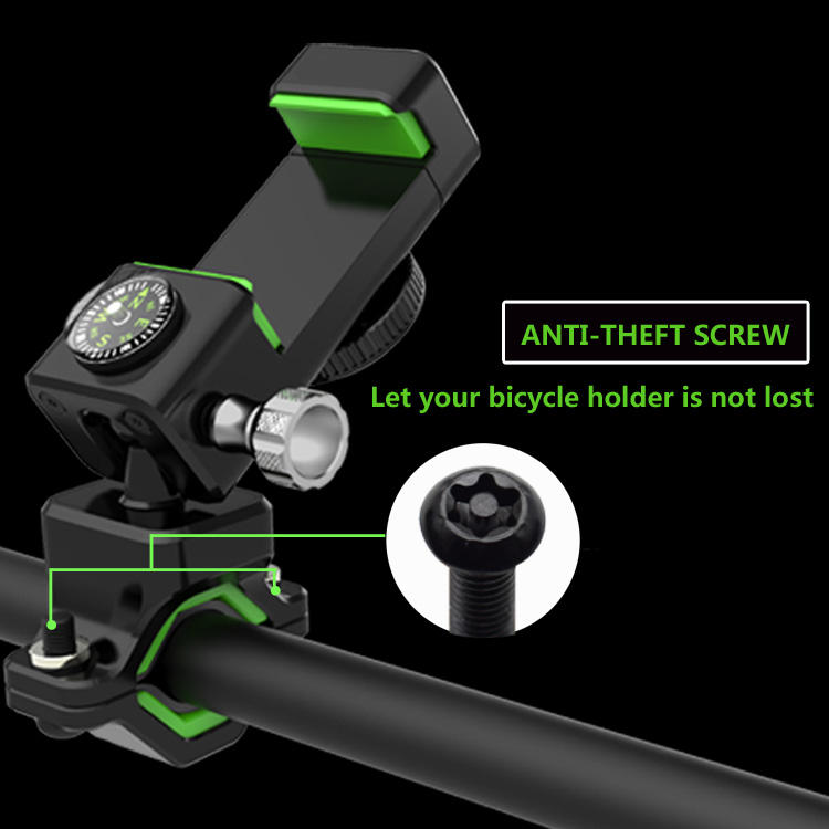 Soporte para Teléfono con Brújula y Lámpara Antirrobo para Manillar de Motocicleta, Bicicleta de Montaña y Scooter Eléctrico
