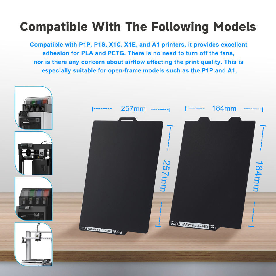 Placa de Impresión en Frío Antinsky para Bambu Lab 257*257mm, Placa Magnética Flexible de Doble Cara Lisa para las Series X1/P1/A1/P2S/P2SC