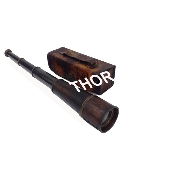 Telescopio antiguo de capitán de barco de latón de 18 pulgadas con caja de cuero marrón Spyglass náutico regalo para niños
