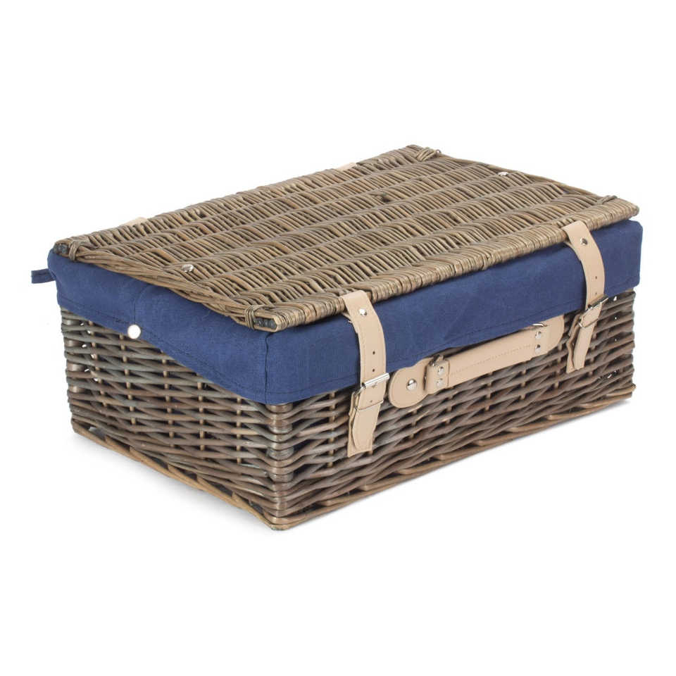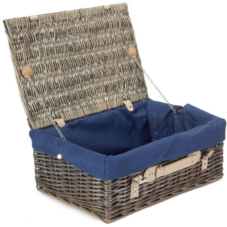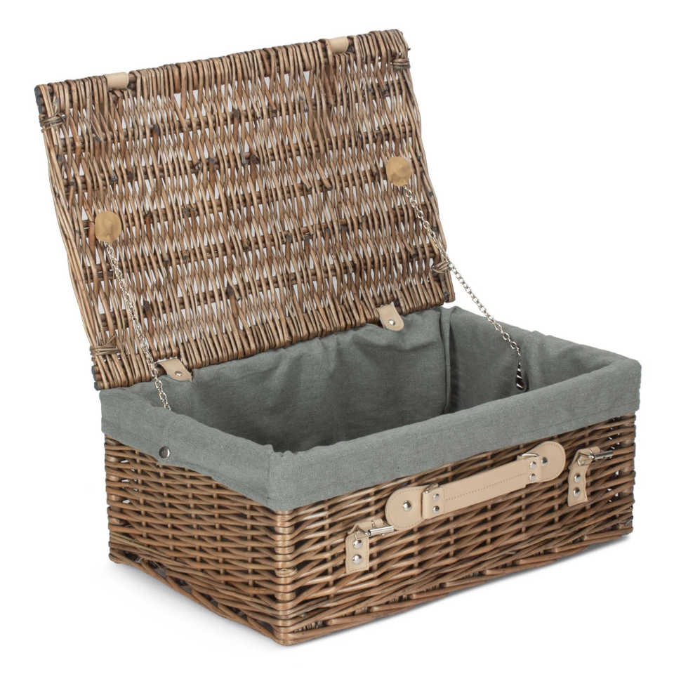 Cesta de pícnic de mimbre antigua de 46 cm con forro de algodón Estilo vintage elegante para comedor al aire libre
