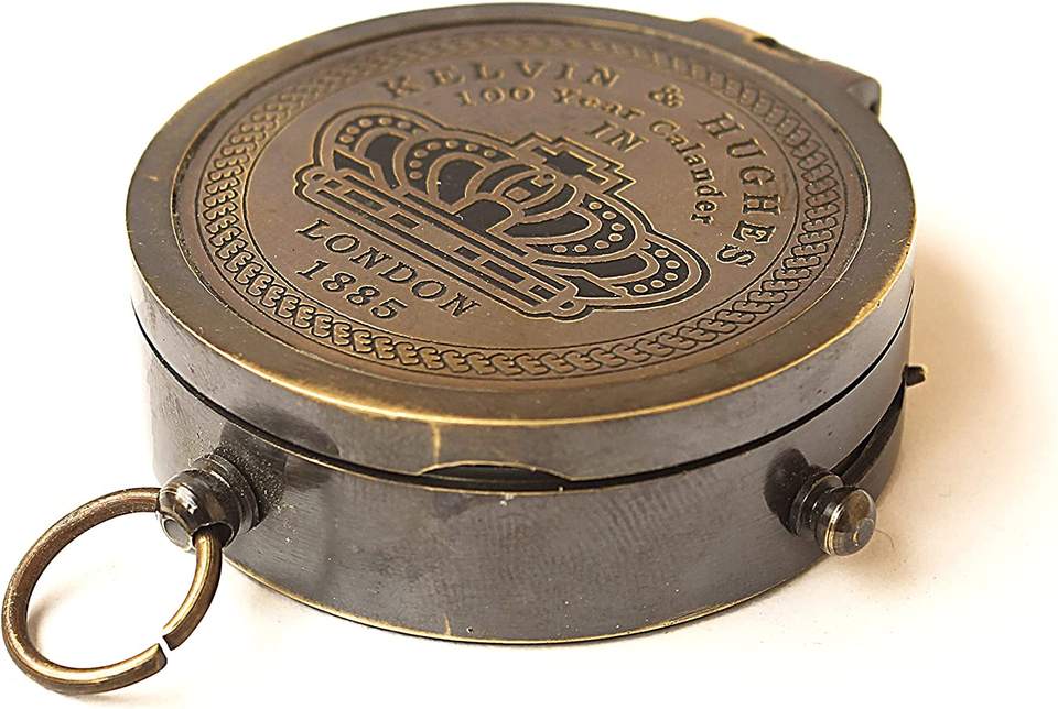 LLavero de calendario de latón antiguo, llavero de latón elegante para regalo, calendario de latón, tamaño de bolsillo, precio al por mayor, bajo nivel de pedido