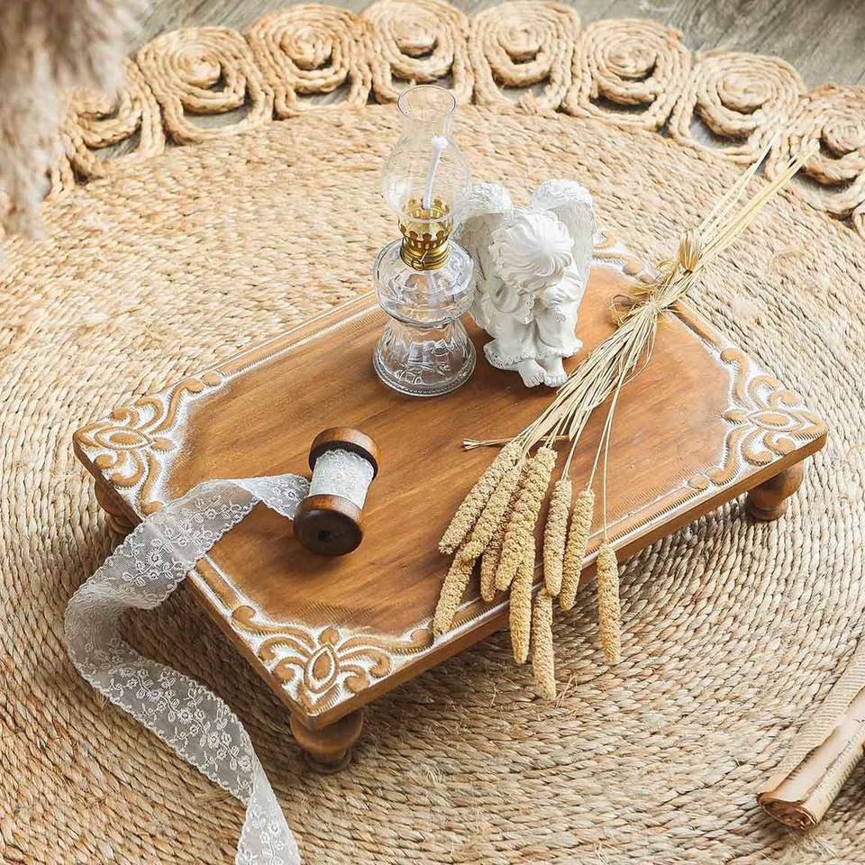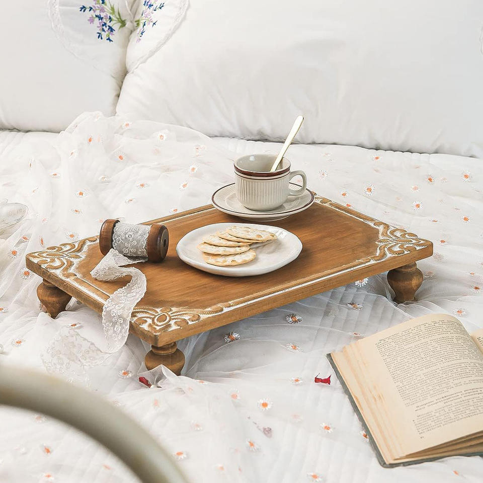 Elevadores de decoración de granja tallados antiguos Pedestal de madera grande Soporte decorativo Cocina Comedor Centro de mesa Soporte de exhibición de madera