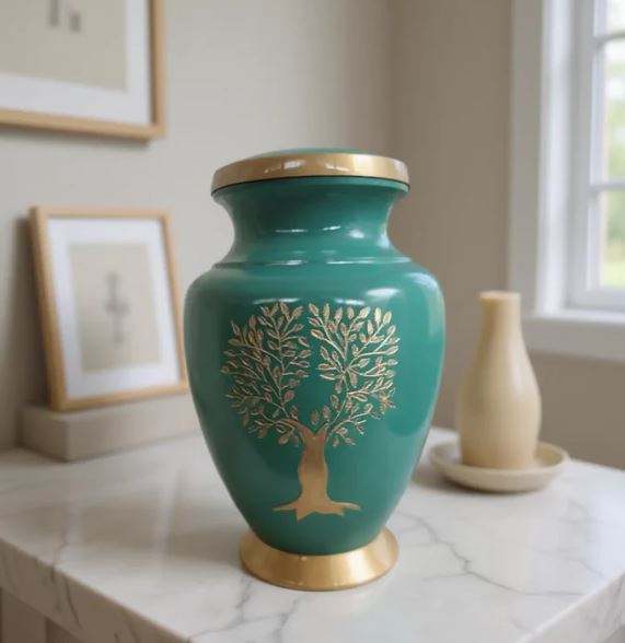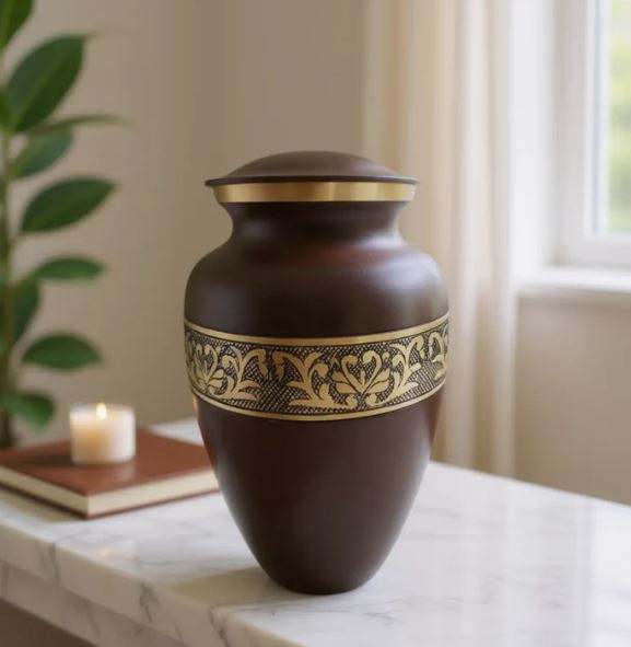 Urna Funeraria Antigua de Color Marrón con Detalles Dorados, Estilo Art Deco, Hecha a Mano, de Metal, 3.4L, Florero de Mesa para Venta al Por Mayor