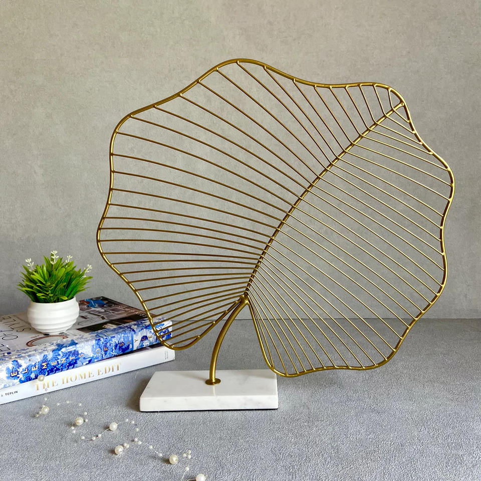Escultura de hojas de Metal chapada decorativa para el hogar y la Oficina, Decoración de mesa, figuras decorativas para el hogar, de estilo indio, de Color antiguo