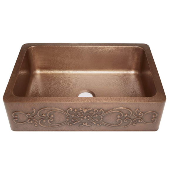 Fregadero de Cocina de Diseño Moderno, Rectangular, de una Sola Tina, con Montaje Inferior, Estilo Rústico, Hecho a Mano en Cobre Antiguo, con un Solo Orificio, Garantía de 5 Años