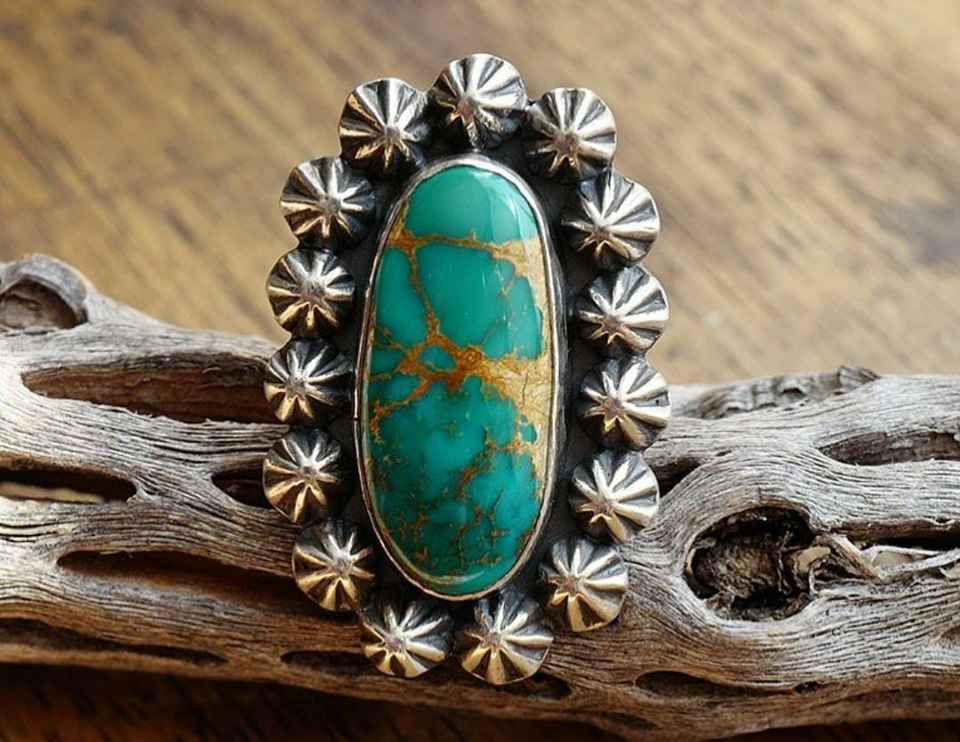 Palabra clave:Cobre Turquesa Natural Gemstone Hecho a mano Anillo Declaración Joyería