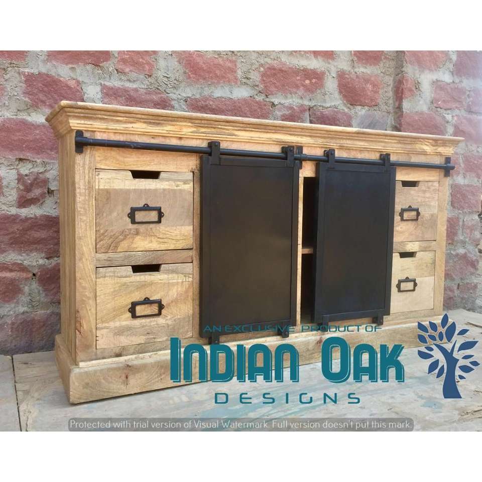 Aparador de almacenamiento de roble macizo de 3 cajones de diseño antiguo, Metal de hierro industrial y vintage y madera de mango para comedor, muebles para el hogar