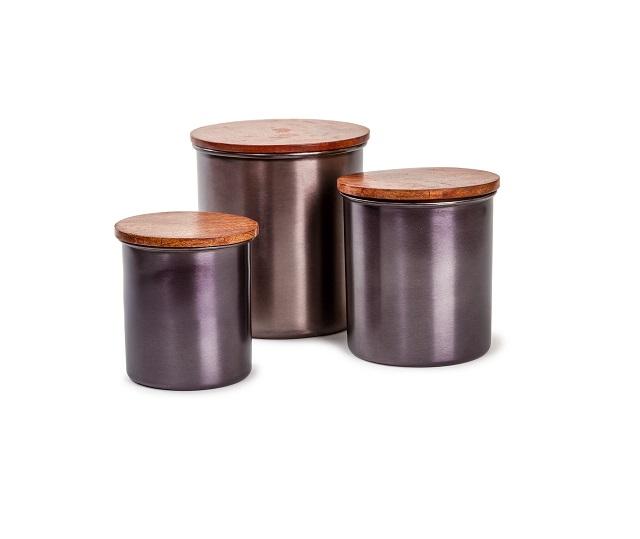 Juego de 3 recipientes chapados en color negro puro de diseño antiguo con diseño Premium y gran calidad a un precio muy asequible