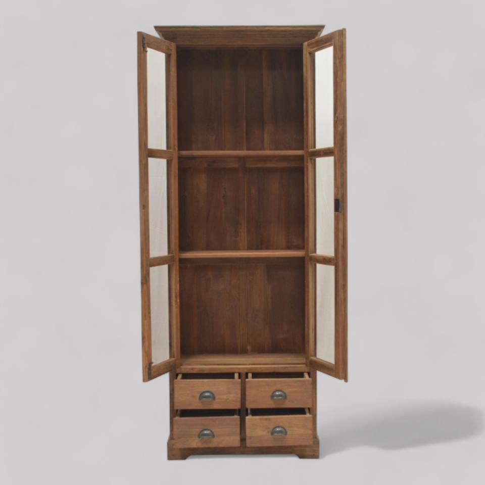 Palabra clave:Vitrina antigua del comedor con las puertas de cristal