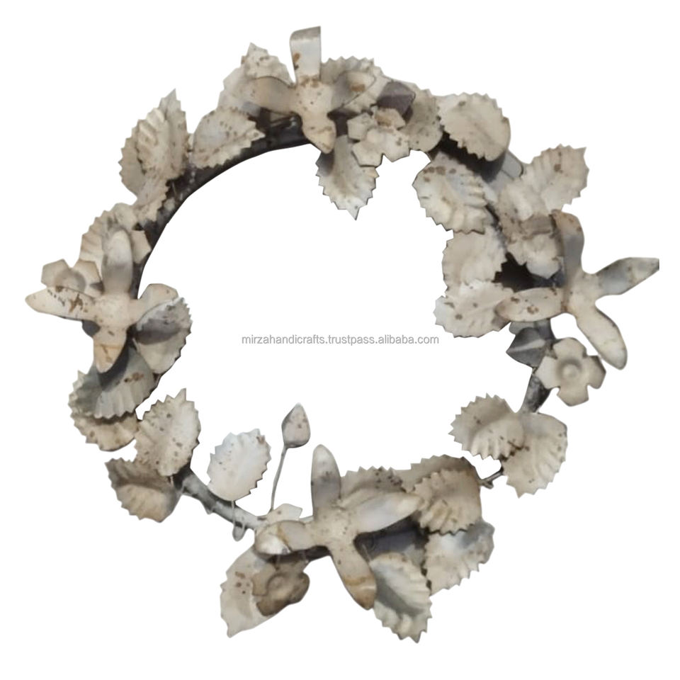 Corona con diseño de hojas de hierro forjado y flores, decoración de fiesta, puerta delantera, ventana, jardín