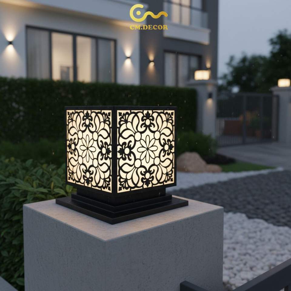 Lámpara de Pedestal LED Floral Antigua para Puerta o Jardín, Decoración Vietnamita, Exterior, Villa, Jardín, Negra, E27, IP65, Acero, 12'', AC 220V
