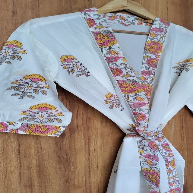Kimono de Algodón Azul con Diseño Floral Antiguo, Tallas Grandes, Estampado Floral a Mano, Ropa de Estar por Casa, Disponible a Precio de Mayoreo