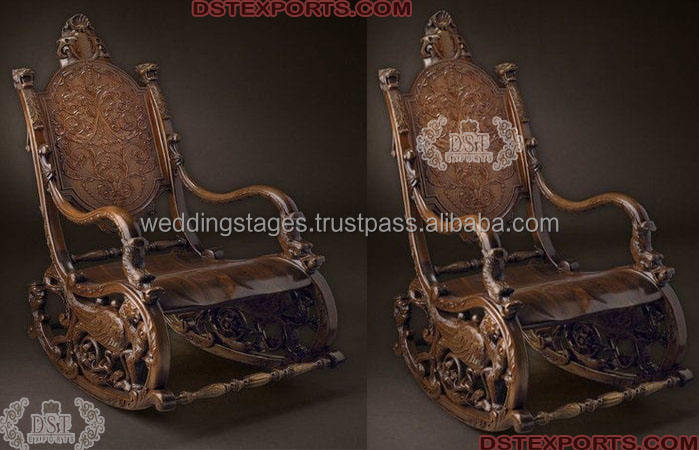 Mecedora de madera de teca, muebles antiguos de diseño, mecedora de madera hecha a mano, en línea