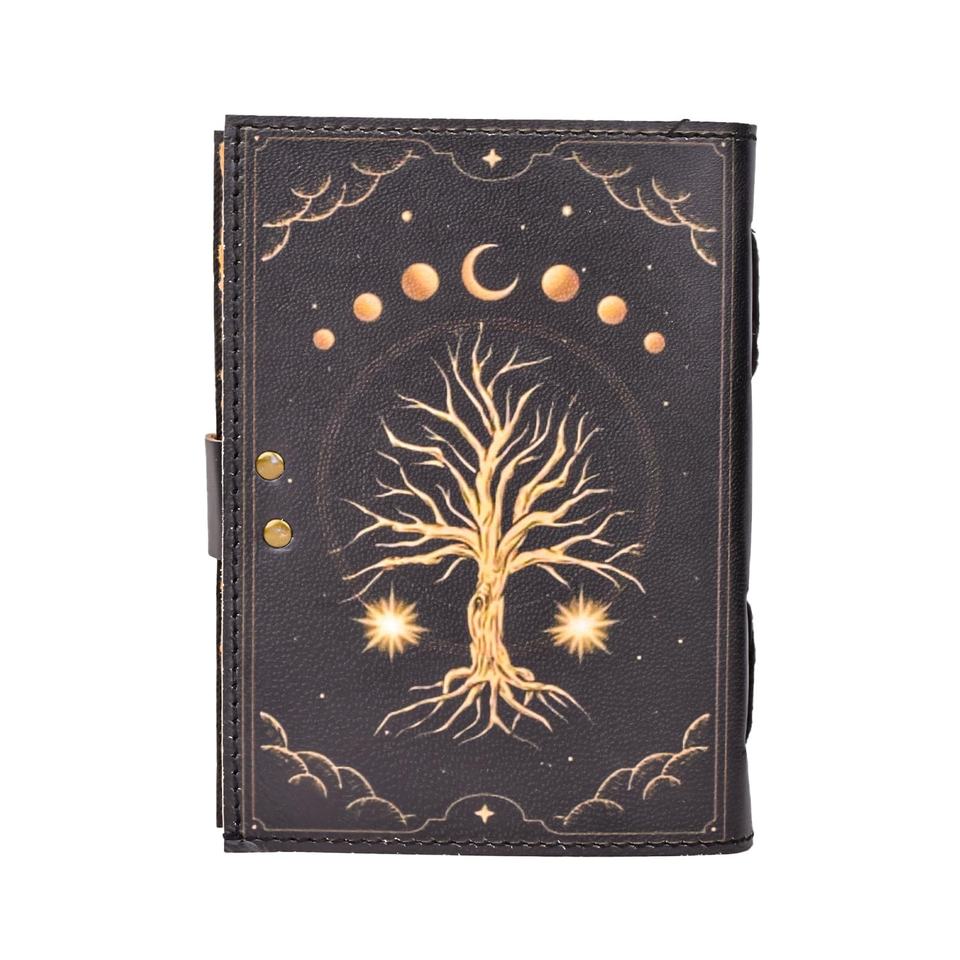 Diario A5 NUEVO de la marca ERA, color marrón antiguo, hecho a mano, con cubierta impresa con protección UV, cuero genuino, costura con hilo, papel sin madera con borde deshilachado