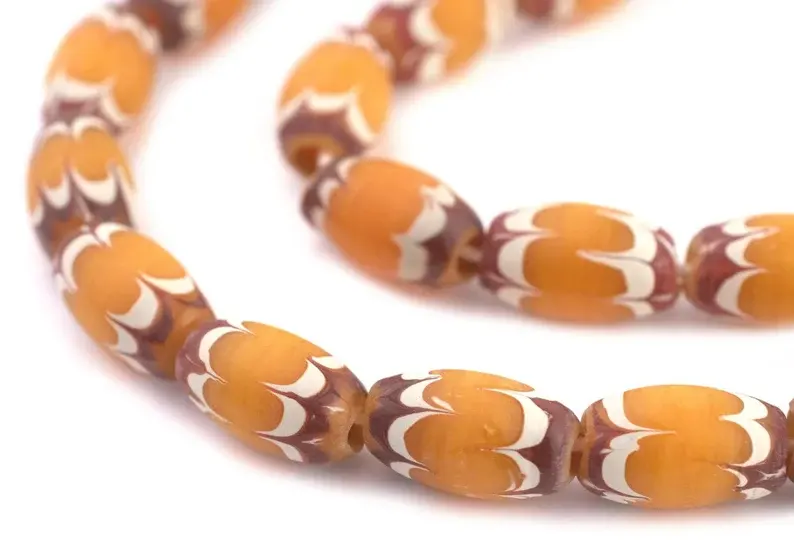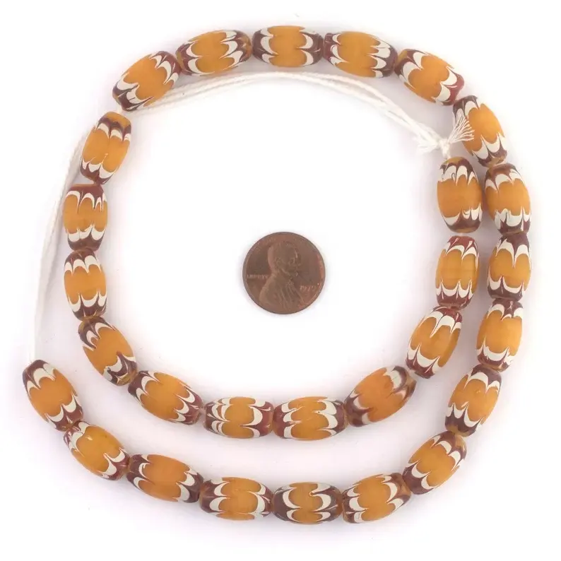Cuentas indonesias de Java amarillo de 8mm de inspiración antigua, diseño de Chevron veneciano bohemio para cristal de Murano y fabricación de joyas de cristal