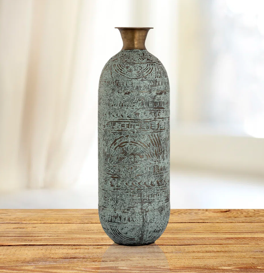 Mesa de Metal de hierro antiguo y jarrón de suelo diseño Floral Retro en azul verde estilo indio de lujo para la decoración del hogar de la boda