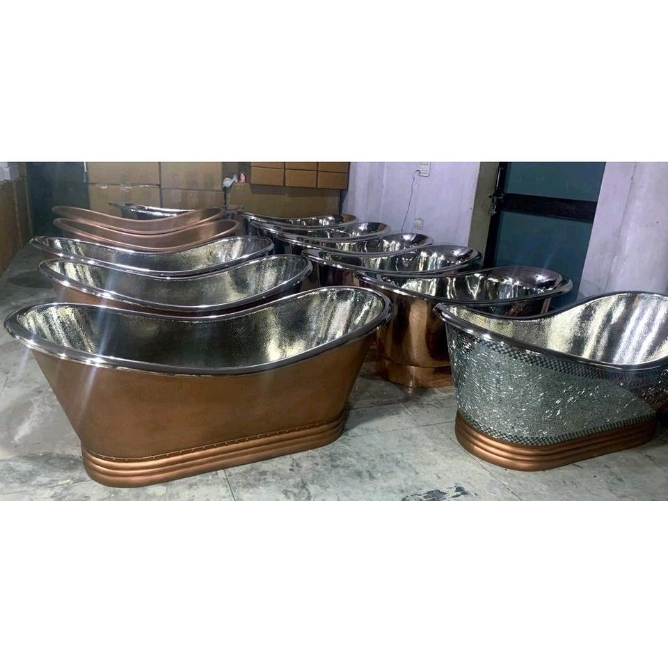Bañera de cobre artesanal de aspecto antiguo Bañera independiente de hotel de lujo moderna Diseño simple con material de cobre puro