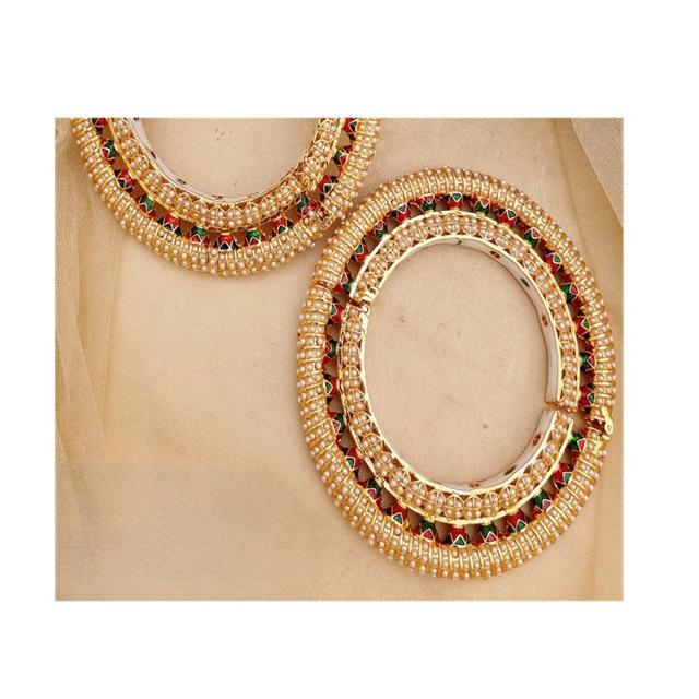 Brazaletes de Patla abiertos de oro alto de aspecto antiguo, Ropa Étnica para funciones, brazalete, conjunto de Kada para mujeres y niñas para festivales