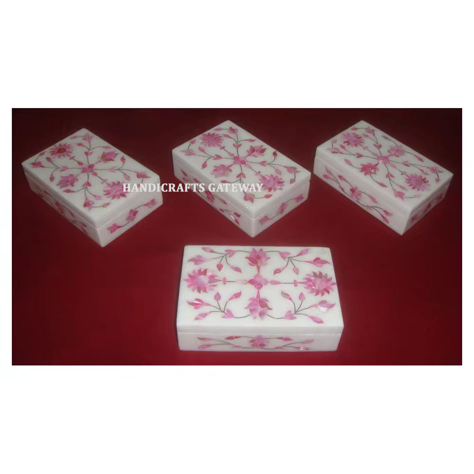 Mármol antiguo hecho a mano de forma Rectangular para cajas de almacenamiento de joyas, caja de diseño de incrustaciones florales modernas con incrustaciones de mármol blanco y rosa