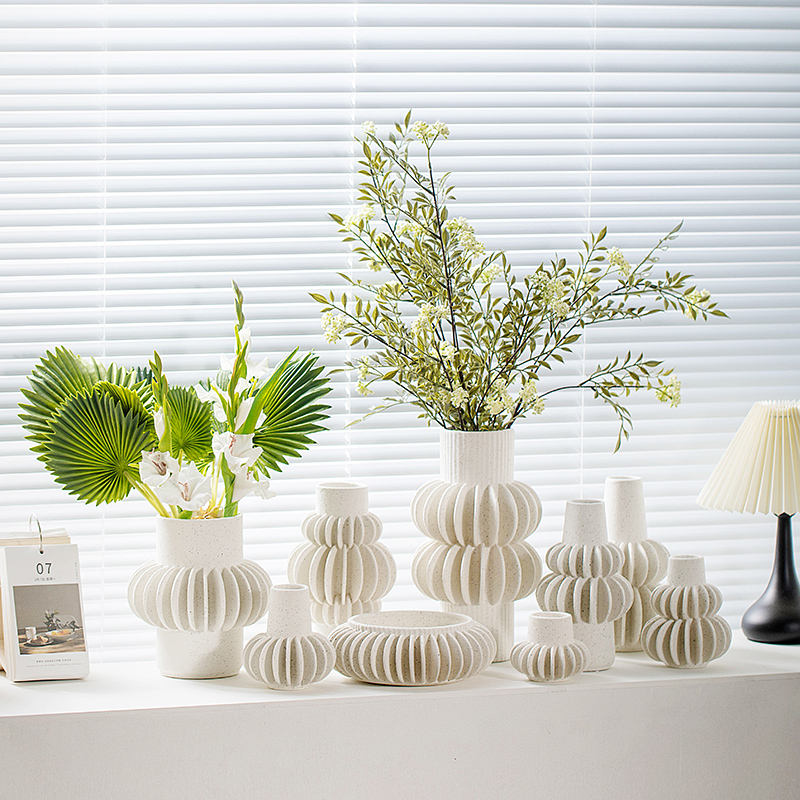 Jarrón de Flores de Cerámica con Curvas Italianas Modernas Antiguas, Jarrón Decorativo para Mesa, Jarrón de Porcelana Blanco Celia para Decoración del Hogar