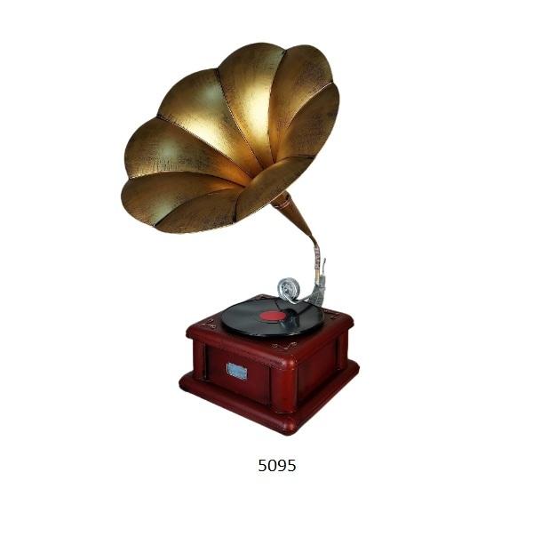 Música antigua hogar decorativo madera y metal gramófono Showpiece