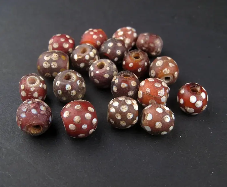 Cuentas de cristal Vintage de comercio africano de ojo veneciano de mofeta roja antigua para accesorios de fabricación de joyas