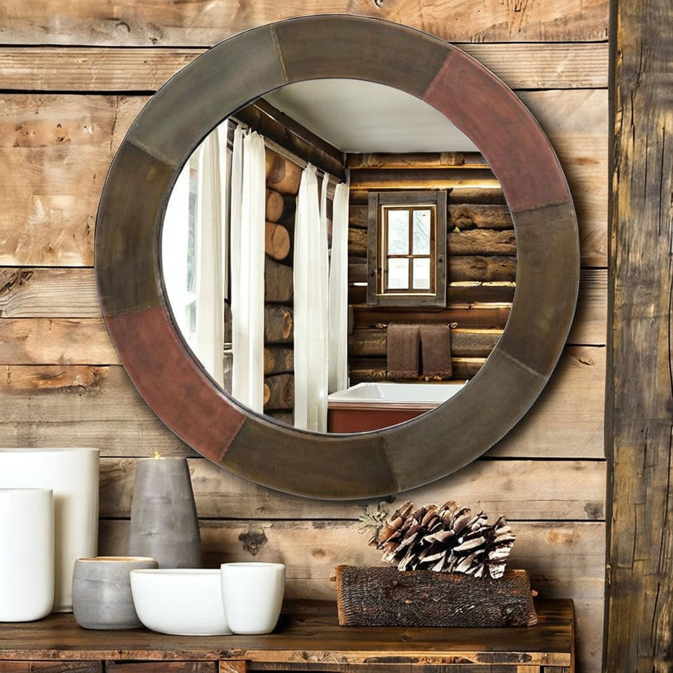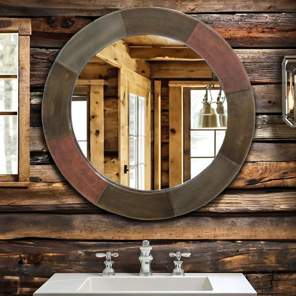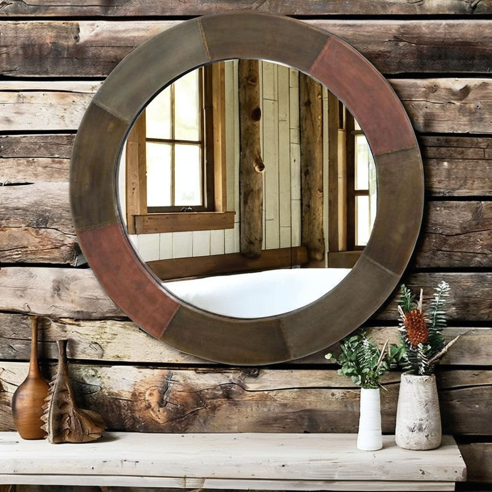 Espejo de pared redondo rústico antiguo marco de madera desgastado espejo colgante decorativo largo con diseño Art Deco para decoración de pared