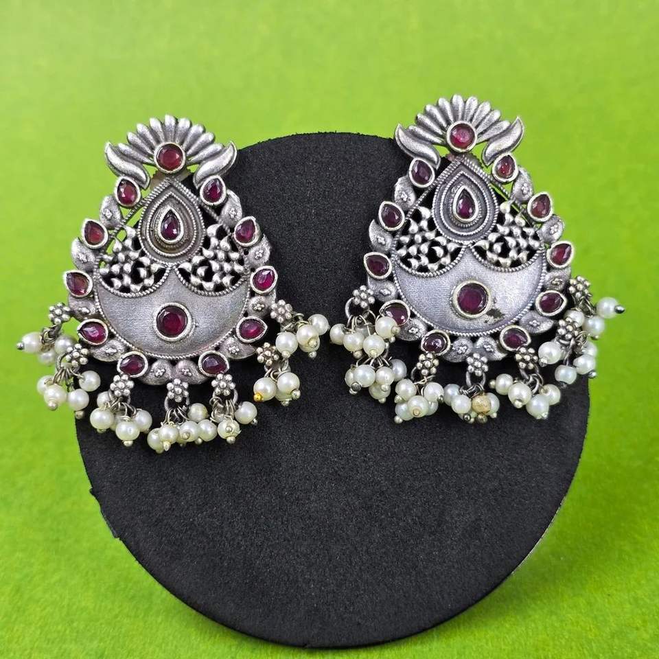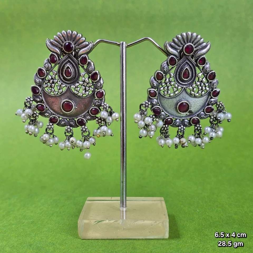 Nombre o palabras:ANTIQUE SILVER PLATEDJHUMKA EARRINS