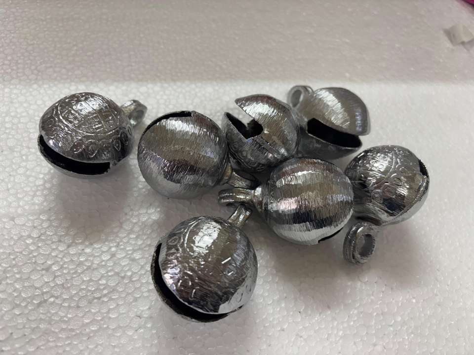 Campanas de vaca de latón grabadas y plateadas en plata antigua, decorativas, rústicas, para colgar, decoración para el hogar y jardín, artesanías, venta al por mayor, lote a granel