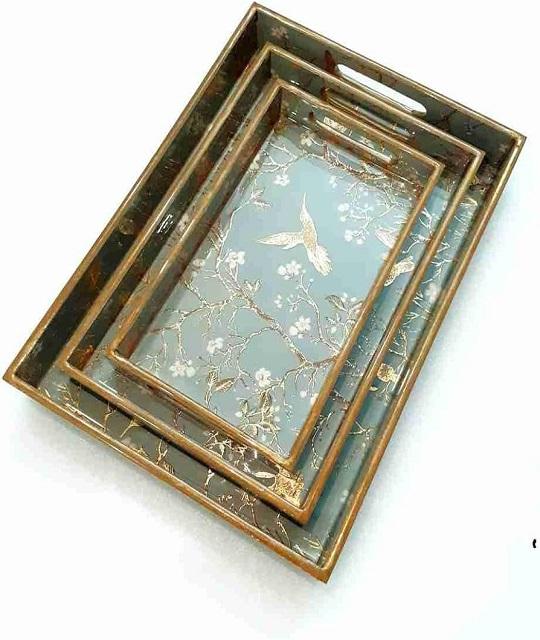 Bandeja de Servicio de Madera con Diseño Elegante Estampado en Esmalte Estilo Antiguo, MDF Personalizado con Detalles Decorativos por f s i