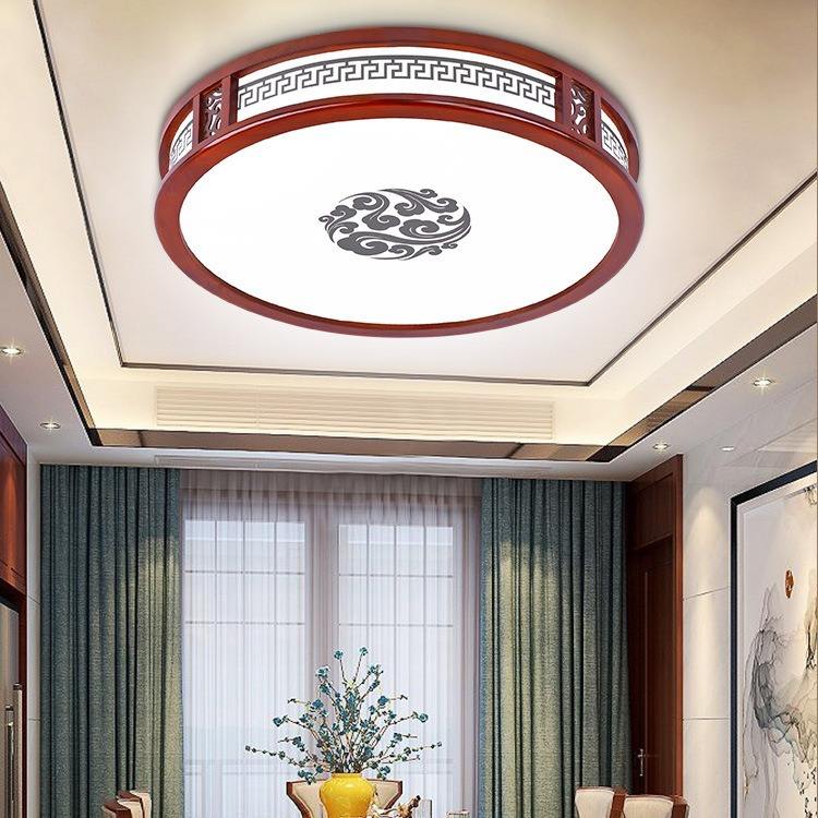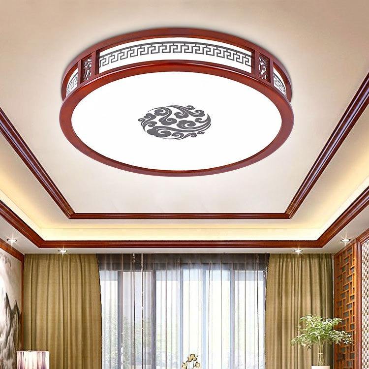 Lámpara LED de Techo Estilo Chino Antiguo, Redonda, para Comedor, Diseño de Nubes Auspiciosas Chinas, Madera Maciza, Estilo Chino para el Hogar