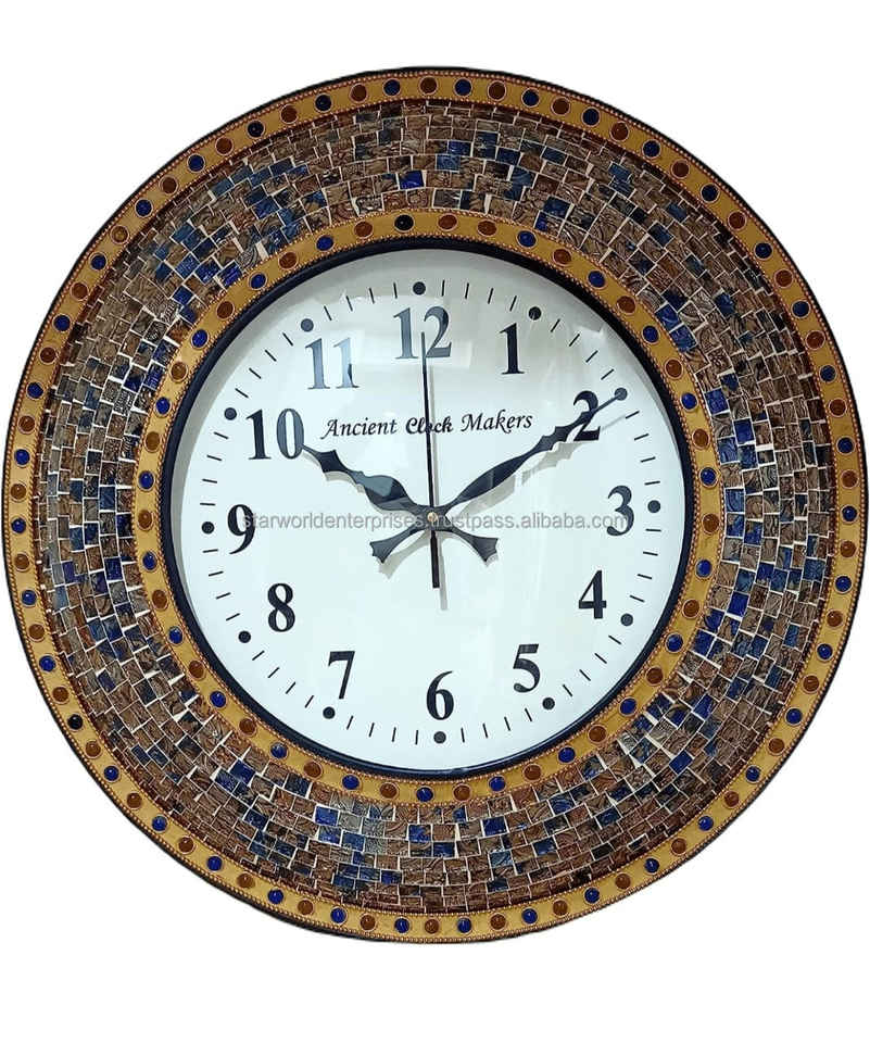 Reloj de pared de hierro colgante de cristal de mosaico de estilo antiguo diseño moderno de una sola cara con pantalla de aguja de Metal de alta calidad