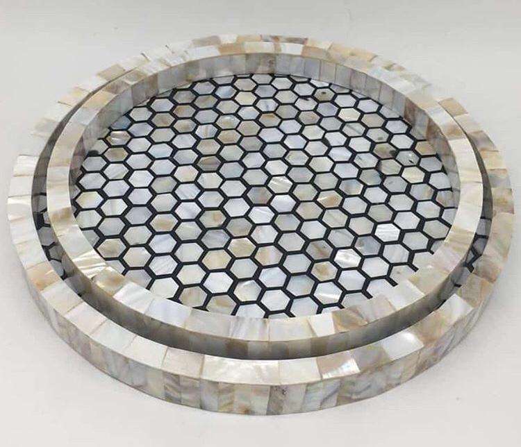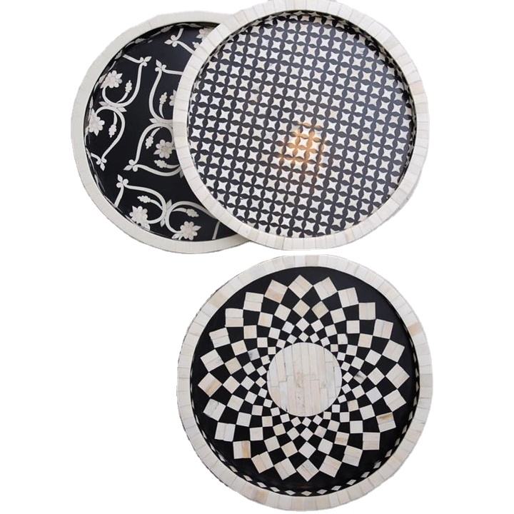 Incrustaciones de hueso tradicionales antiguas Bandejas para servir de nácar Premium Hoteles y restaurantes Incrustaciones de hueso Bandejas redondas multifuncionales