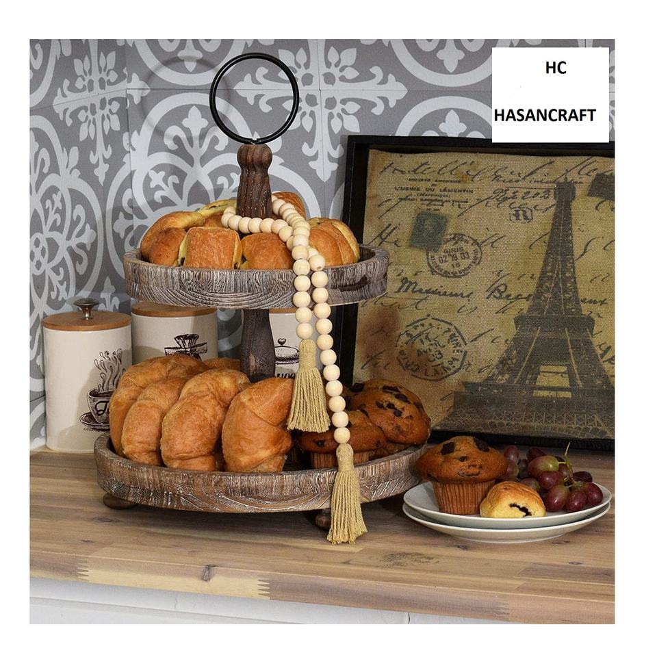 Bandeja de servicio de madera de estilo de granja rústica de dos niveles antigua, soporte decorativo ecológico para centro de mesa de fiesta, pastel de postre
