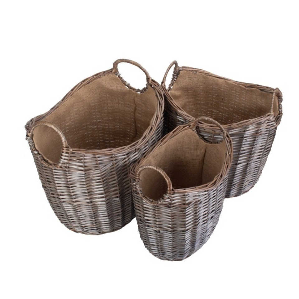 Weidenholzkorb lavado antiguo con Cestas tejidas de U-Ausschnitt Sackleinen Futtered Categoría de producto