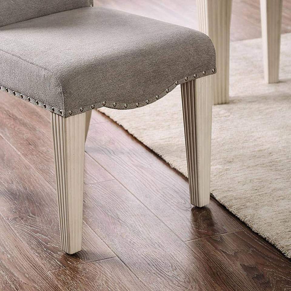 Juego de 2 Sillas de Comedor de Estilo Transicional en Blanco Antiguo, Diseño de Respaldo de Camello con Tapicería Gris, Sillas Parson con Estructura de Madera