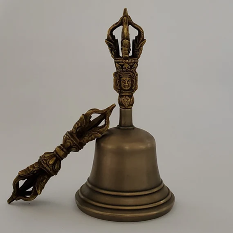 Combinación de Vajra y campana de cinco puntas con acabado antiguo, con sonido claro y resonante, excelente, a precios al por mayor.