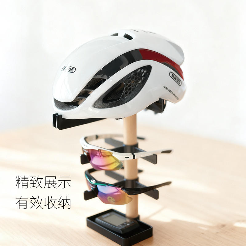 Soporte para Casco Antuke, Madera Sólida, Ajustable, Organizador Vertical de Accesorios para Bicicleta, Negro, Naranja, Gris