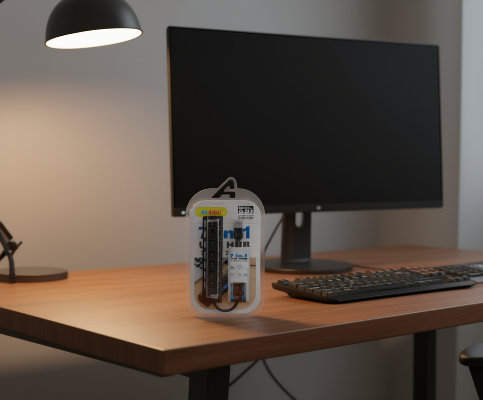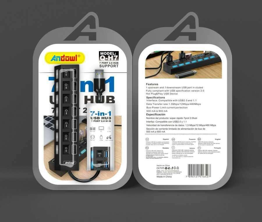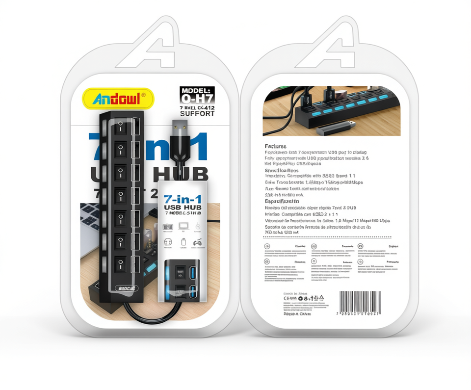 Anycow Q-HUB, Hub USB 7 en 1, Sistema de Vigilancia y Seguridad con Múltiples Puertos para Computadoras y Dispositivos