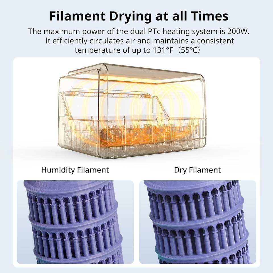 Caja secadora de filamentos para impresora 3D Anycubic Ace Pro, compatible con Kobra 3 Max, contenedor de almacenamiento de filamentos de plástico con tapa transparente y cuatro bobinas.
