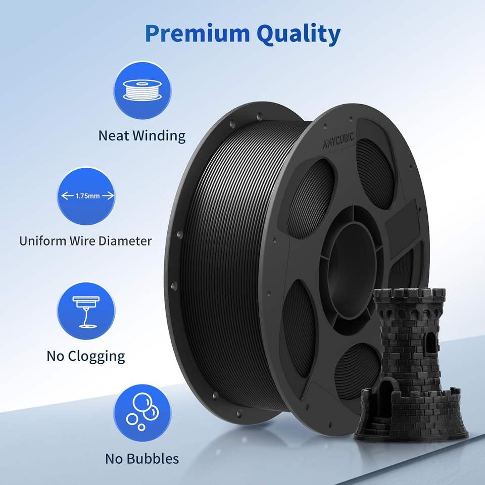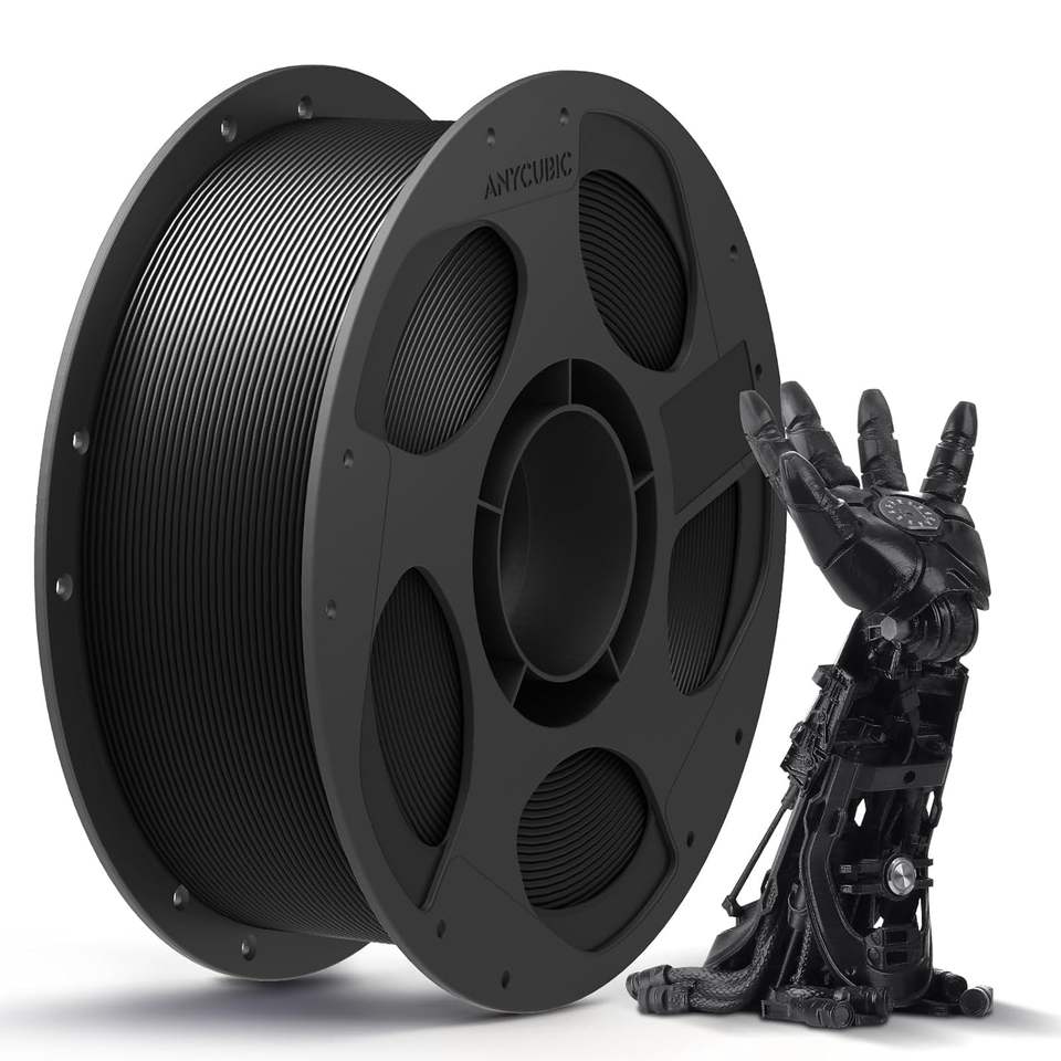 Filamento para Impresora 3D Anycubic PLA, 1.75mm, 1kg, Bobina Reutilizable, Color Negro, Precisión Dimensional de ±0.02mm